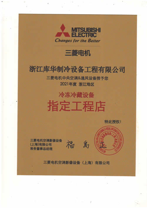 三菱冷凍機(jī)2021年指定工程資質(zhì)
